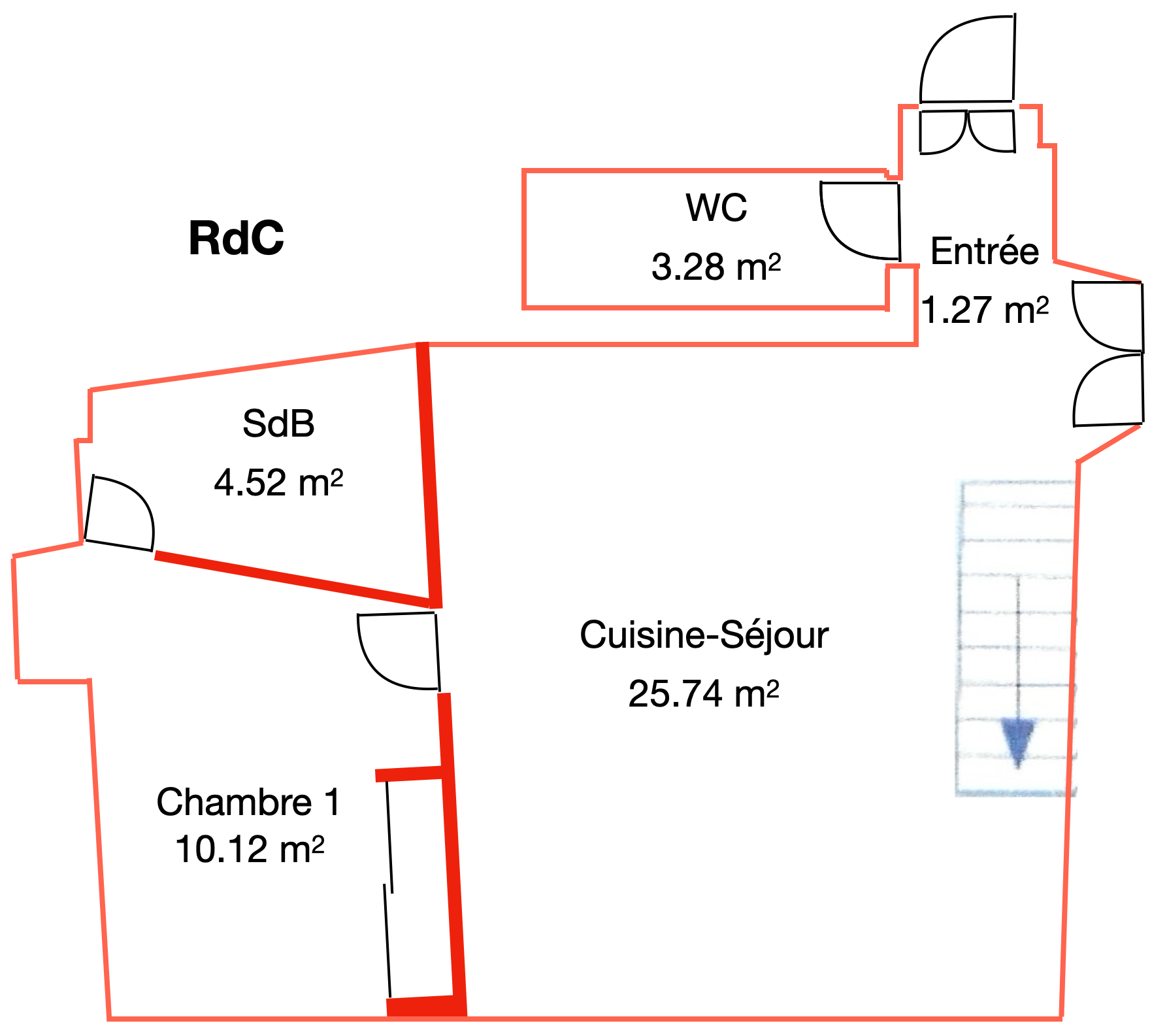 Note: Les pièces du sous sol n'ont pas de fenêtres ouvrantes et ne sont pas comptabilisées par la loi Carrez
